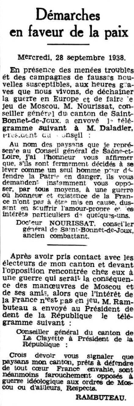 Article du Courrier de Saône-et-Loire, 1er octobre 1938