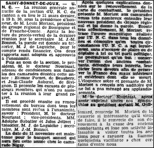 "J'habite Saint-Bonnet-de-Joux depuis 1935, d'où, j'ai parfaitement connu le Docteur Nourissat auquel vous faites allusion. C'était d'ailleurs le médecin de ma famille. Pour ma part, j'avais beaucoup d'estime pour lui."26